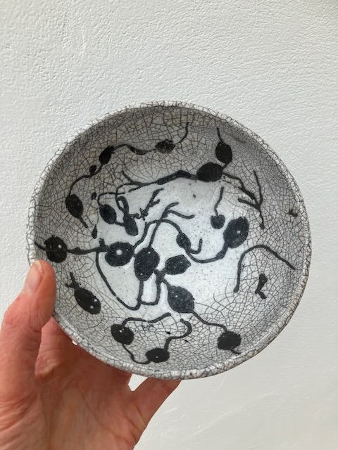 I first started doing raku with Mary Chappelhow of Interlude Ceramics, as part of her evening classes. In 2024, I bought my own kiln, so I can can create fire, smoke and soot whenever I like (as long as it’s a westerly wind so I don’t smoke out the neighbours!)